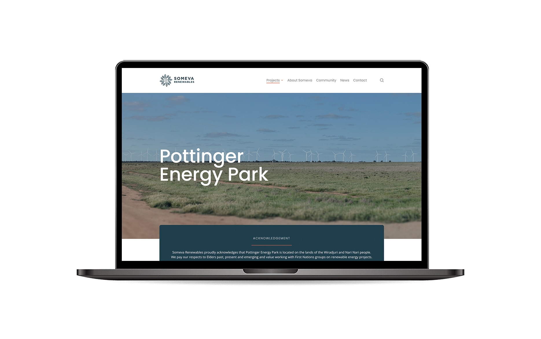 We were asked to partner with Someva and Kaizen PR to develop a whole new digital experience and information portal for their growing renewable energy projects. The design and user experience of the site focussed clearly on community engagement, ease of information delivery and ongoing updates to energy site developments.